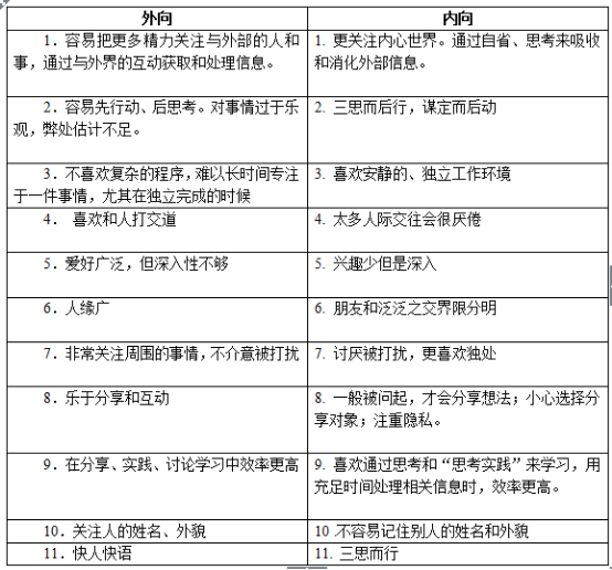 性格的内外向是一个饱受争议的话题。先看一下内外向的主要表现形式: