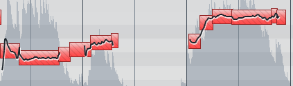 audio),可以看出“准”到了极致。图中灰色块是绝对音准的标尺,红色块是演唱的基本音高,里面的波浪线是演唱的实际音高。这首《味道》从头到尾几乎都是灰色标尺与红色块完全重合,颤音过于齐整,明显进行了精细的修音高工作。