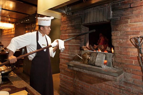 "挂炉烤鸭"并没有炉门,用果木点燃烤制而成,使用明火烤制,过程中也会不时翻动鸭身,使鸭子全身都能受热均匀.