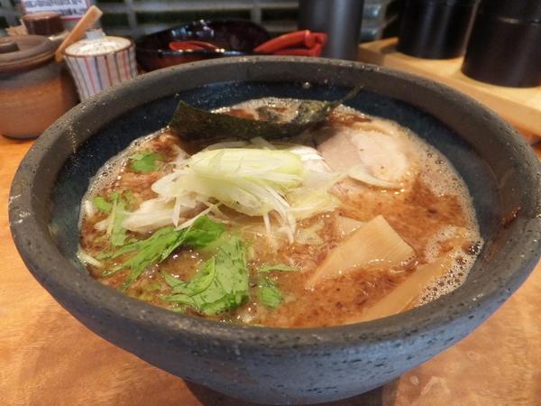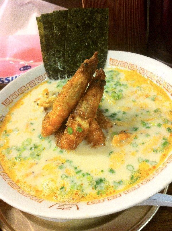 哲面卖的也是标准豚骨叉烧拉面,据说汤头是熬制了6个小时的猪骨汤和熬制3个小时的鸡汤,再加上麻油配置而成。如果说二郎和用心棒都青睐超粗的拉面,那么哲面则走了另一个极端,这里特色品种是极细的面,同时也十分劲道甚至有几分“脆”的感觉。和传统的拉面店相比,这间初代继承也勇于尝试新的东西,比如下图这个虾拉面。