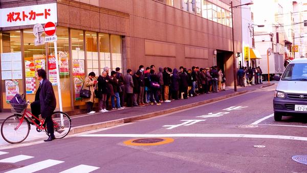 但无论是简陋的环境还是狭窄的空间,都无法阻挡东京人民成群结队来吃二郎的脚步,这间店的平均排队时间在40分钟左右。无论刮风下雨,二郎的店门口永远是这样的一副场景。