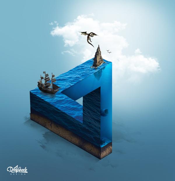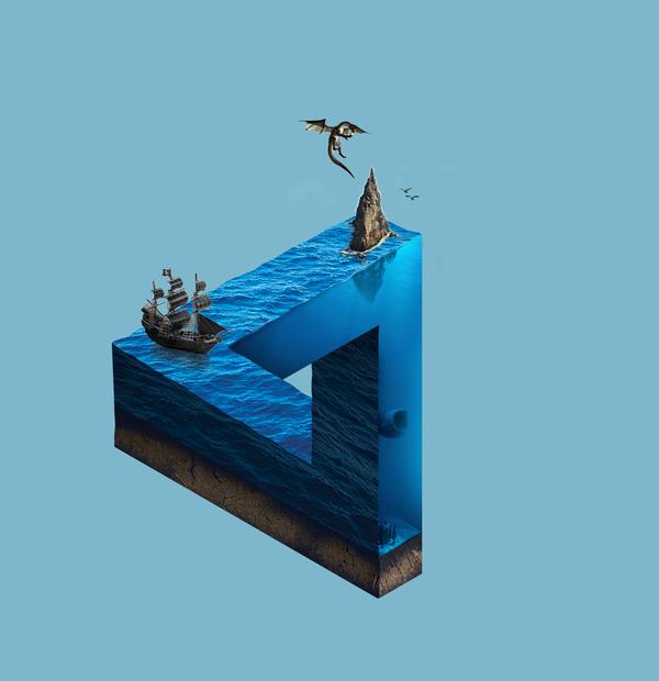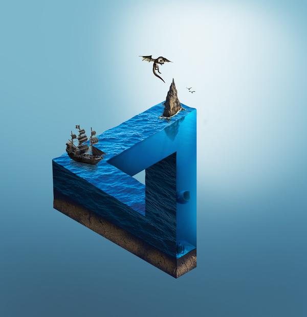 使用画笔、渐变等工具深化光影,加强层次感和立体感,并把顶层的海浪边缘细节画出来。