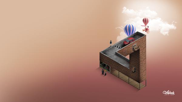 使用矩形工具绘制多个长方形,利用旋转、斜切等功能将多个变形后的矩形拼接成如下样式,斜切角度正负30度。部分遮盖面使用钢笔工具或者蒙版工具调整皆可。