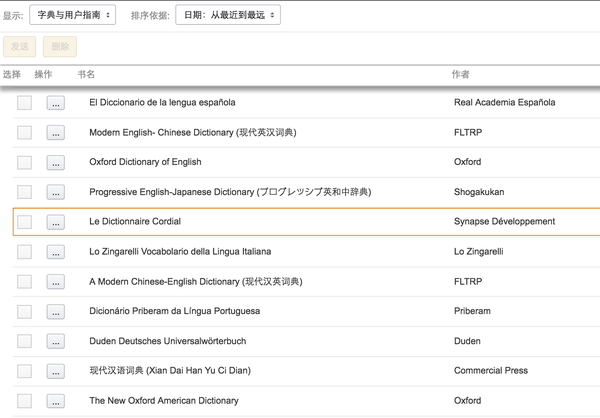 Kindle内置多国语言词典,满足了Kindle爱好者的语言学习诉求。在最新的5.8.1版本中,更是加入了中英文生词提示的替换功能,更多维度地方便了学习英语的朋友。大家可以登入中亚官网→找到亚马逊商店→管理我的内容和设备→词典与用户指南,就可看到各种语言的词典了,可根据自身需求推送合适的词典。也可以通过相关途径购买词典然后通过USB连接到PC,然后将词典复制到Documents的Dictionaries中,接着打开Kindle,单击右上方的点点点→设备选项→语言和词典→词典→选择自己默认需要的中文和英文的词典。接着,便可开始畅游你的阅读世界了,下图为原生配置的词典☟
