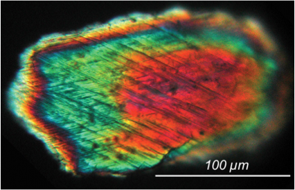 不久,陨石撞击的更多证据陆续发现。比如在白垩纪和古近纪地层交界处,人们找到了很多冲击石英(如下图)。这种内部结构变形的矿石需要巨大的压力(比如核武器爆炸或陨石撞击)才能形成。接着,一个位于墨西哥尤卡坦半岛的直径180公里巨大陨石坑被找到。这个已经被海水淹没的陨石坑和预测的陨石撞击完全吻合。至此,白垩纪末期发生陨石撞击假说得到了证实。