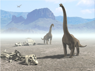 我们知道恐龙于今天的爬行动物不一样,它们不是冷血动物,但是它们同样也不是哺乳动物一样的温血动物。它们应付低温的能力应该不如哺乳动物,所以5-7度的温度下降可以对它们构成一定的威胁。同时,气温下降对植物也有影响。植被的衰退缩小了草食恐龙的食物来源;草食恐龙的减少又缩小了肉食恐龙的食物来源。食物链的破坏可以触发很多恐龙物种的灭绝进程。