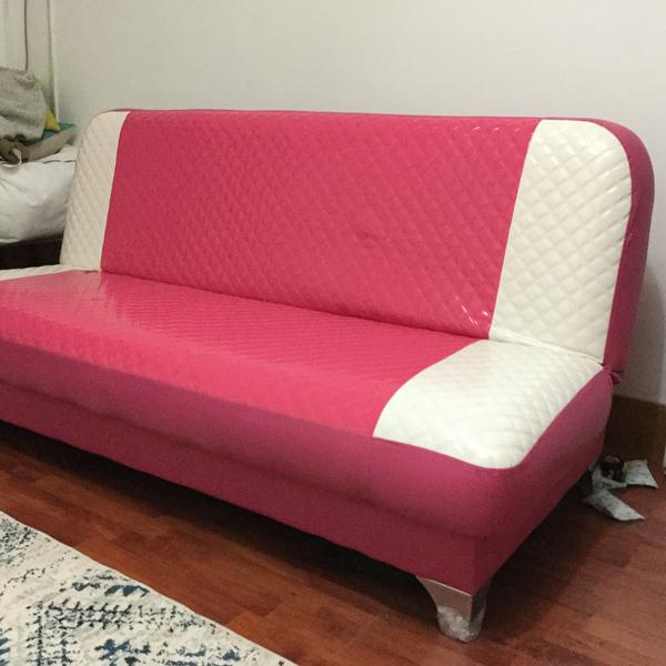 房东姐姐把闲置多年的一个沙发床送来了,很新,就是颜色有点醉人~而且有点硬。自己缝个沙发套,还垫了一床被子在里面。