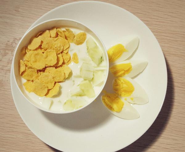 ⬇酸奶+玉米片+黄瓜+水煮蛋