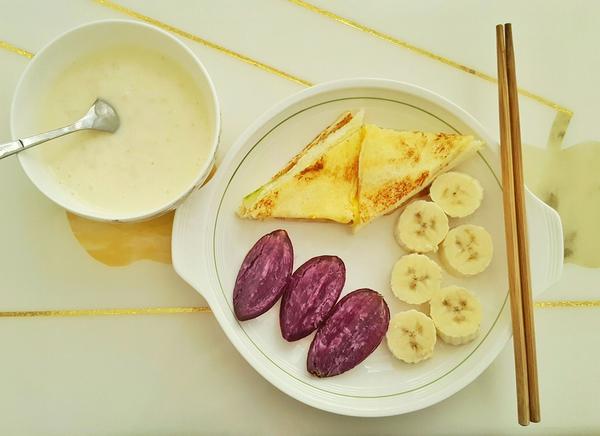 ⬇紫薯牛奶(紫薯蒸熟,用勺子捣烂)