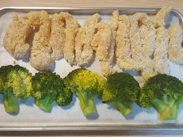 ⬇小吃店买来的腌制好的鸡柳+烤西兰花(嘴馋的时候来一发)
