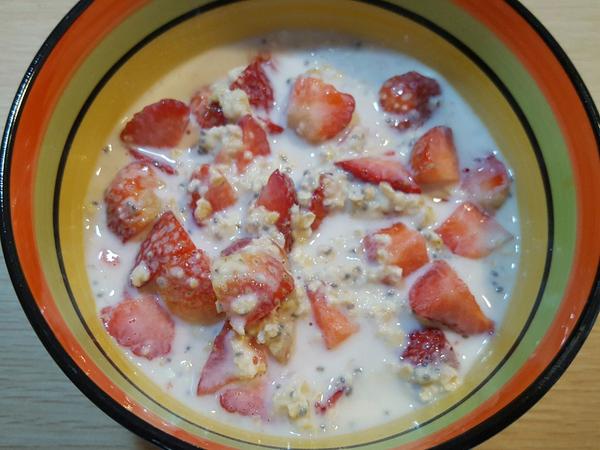 (燕麦直接加到酸奶里需要泡很久,节约时间的话可以用一点点开水先把麦片泡开再加到酸奶里)