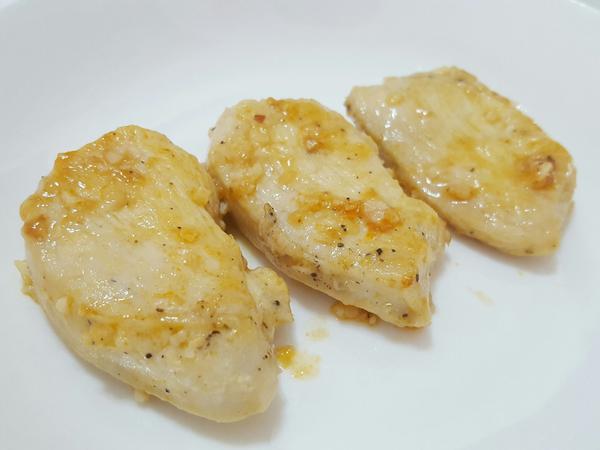 ⬇香煎鸡胸肉(提前一晚用蒜蓉+等你+一丢丢生抽腌制)