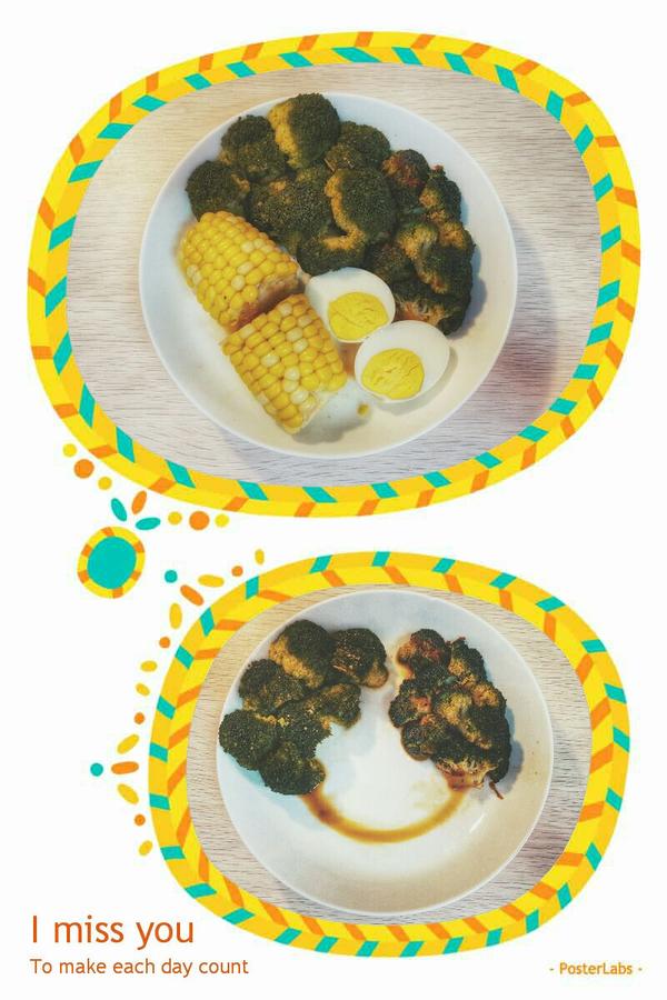 ⬇烤西兰花+甜玉米+鸡蛋(西兰花煮半熟再烤比较好,煮的时候加调料可以入味)
