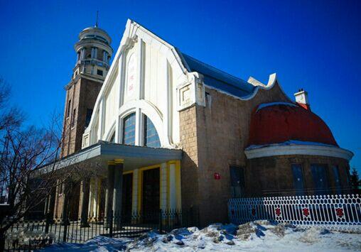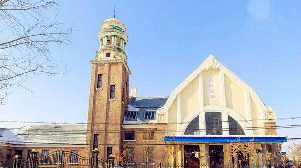 法国式砖木结构建筑,红瓦黄墙,一楼一底。