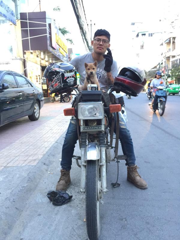 从今年2月6日在越南捡到这只土狗后,带它去了5个国家,几十个城市,现在还带在身边自驾旅行。