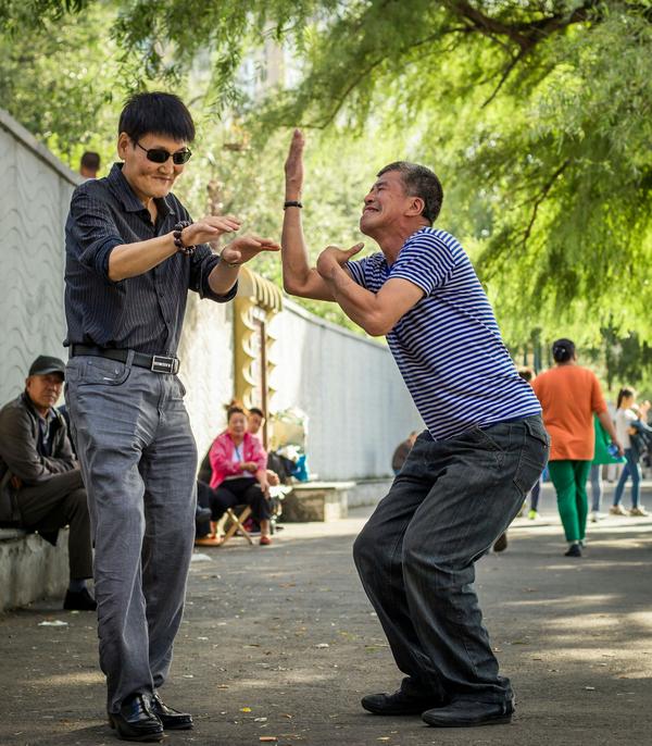 松花江边跳舞的大叔,本来已经准备收场,发现我在拍照,立刻又兴致勃勃地跳起来。