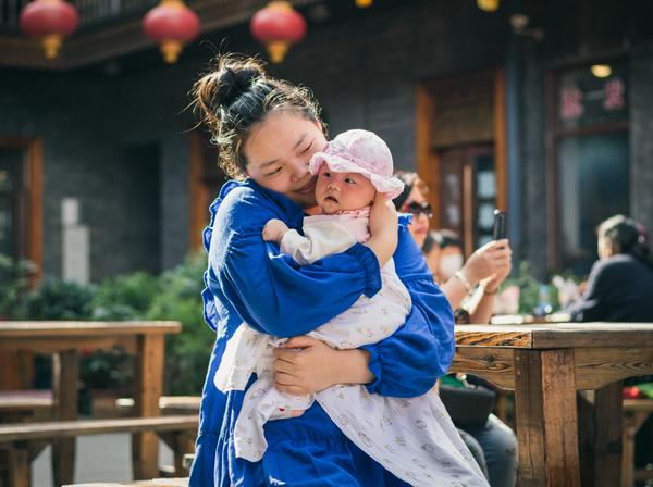 哈尔滨老道外抱着孩子晒太阳的母亲,眼里是满满的爱。