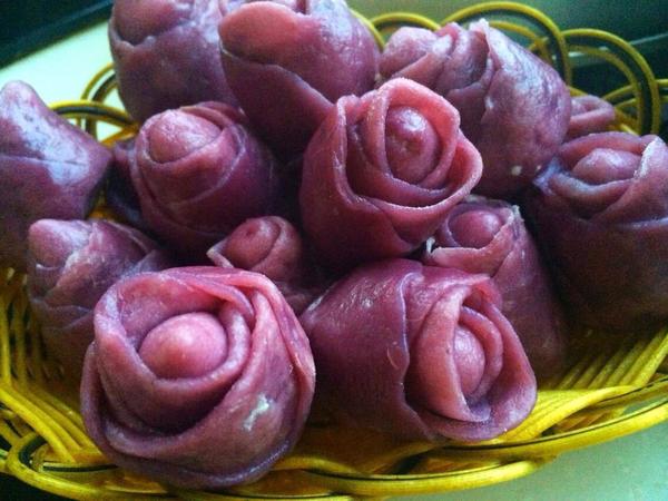 玫瑰紫薯奶香馒头~玫瑰花蒸完自己被丑哭了