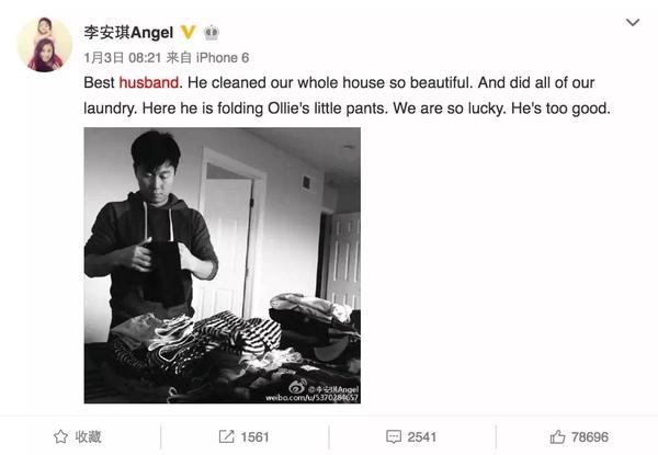 而小鹏爸爸这边也是一样,因为当初是李小鹏对李安琪一见钟情,并且苦追她好几年,甚至现在一口流利的英语都是为了方便追安琪而学的!所以微博的字里行间都在表达着“老婆你最珍贵”——