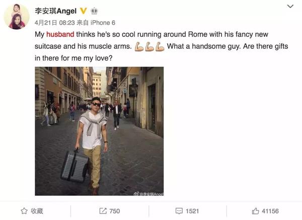 随便翻一番李安琪的微博,就能立马嗅到一股狗粮的味道,赤裸裸的炫夫属性暴露无遗: