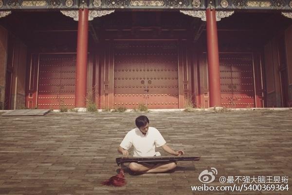 这是据说六年前穿大裤衩在故宫抚琴,后海卖艺的照片。