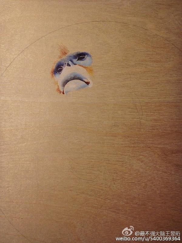 一般绘画都是先定出比例轮廓,然后由整体到细节画;但王昱珩起手直接就从物体的眼睛开始画。这样画会极大增加难度,绘画的准确度与整体性,也极大考验画面效果。