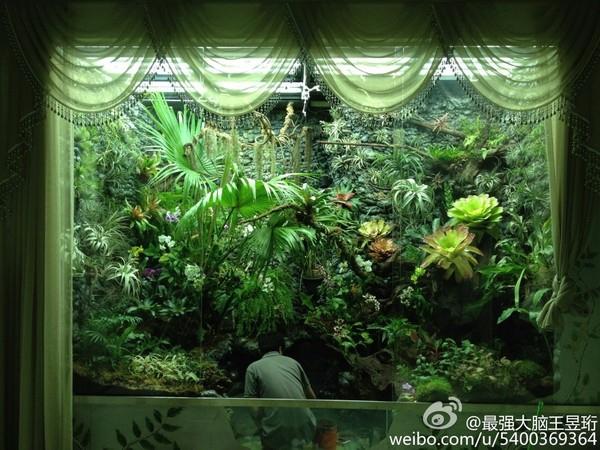 生活中70%的时间,他留给了培育花鸟鱼虫,他的家就像是一座森林公园,家里的动植物种类异常丰富,从热带雨林到高寒植物,从高空飞鸟到海底珊瑚,都在他的照料下长得健康活泼、生机盎然。