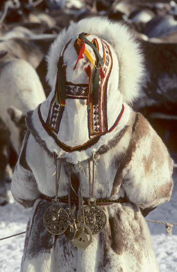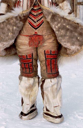 好多张兽皮如此实惠的绑在身上,太奢侈了!脸上是什么?那是防止雪盲症用来减少眼睛入光量用的。不过现代妹子用得上这种服饰吗?