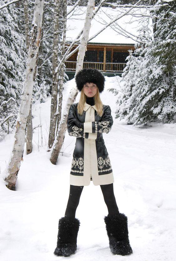 这么民族的服装现在没法穿了。不过战斗民族倒是为现代冬装贡献了一个好东西。就是帽子。俄式高顶帽直接源自古代俄罗斯贵族的各种头冠,基本都是用毛皮制作,不仅保暖,还可以平添十五公分身高,冬季不能穿高跟鞋?不要紧,来一顶俄式高顶帽,你的身高又回来了。并且还能加大外观上的头部比例,避免因为衣服太厚让头部看起来太小。尤其是毛皮长大衣,绝配哦!来,发图看看是不是这么回事。
