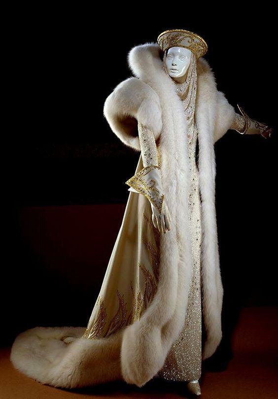 先来看看和现代冬装接近点的这件高定冬装,这件冬季出行用仪式外套现存于冬宫,主人是末代沙皇公主安娜斯塔西亚,帽子和长裙不是原配装束,是公主的另一套仪式装。这么豪华的外套到底暖不暖?当然暖,这件衣服虽然敞着怀,不过在纯室外场合下穿用的距离也就是从马车上下来再走到室内那么远,在马车上那么厚重的下摆放哪?腿上。女性体型本来就小,大领子大袖口,一缩就全进去了。