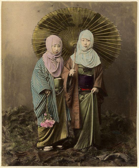 说完了印第安,看个近的。日本。这是日本的传统出行冬装。其实不算厚,不过会标配一把伞用来挡雪。