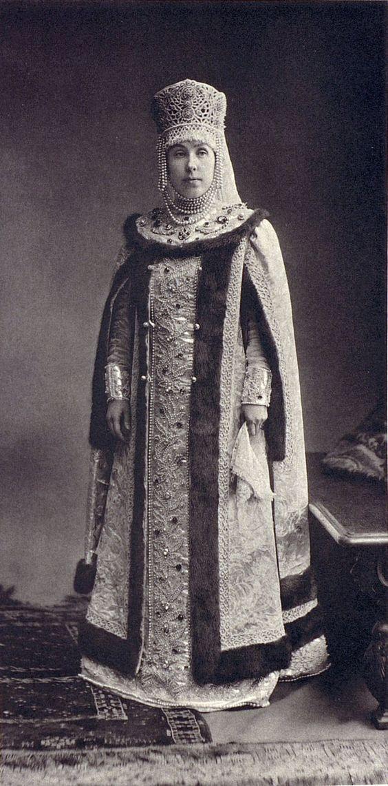 末代沙皇的皇后亚历珊德拉,东正大帽子,敞怀长袍,假袖筒。不过毕竟没公主年轻,身段没那么好,长袍穿起来效果要弱多了。