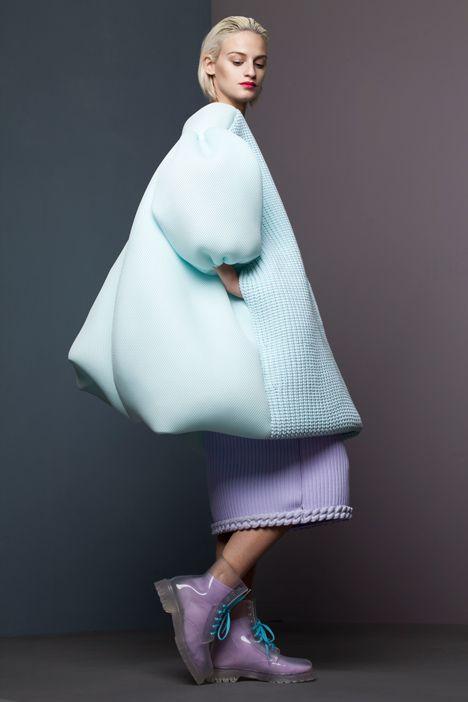 到了现代,这个创意变成了这样。嗯,以体积换温度,同时又保证了体型,毕竟穿的是裙子,只要三角形轮廓在那里,就有说瘦的资本!如果不乘车的话,完全可以这么穿,硬挺一点的外裙可以遮盖住里面的任何衣服,这太棒了。不过必须得是高腰大长裙,设计漂亮的不多,得好好挑挑了。