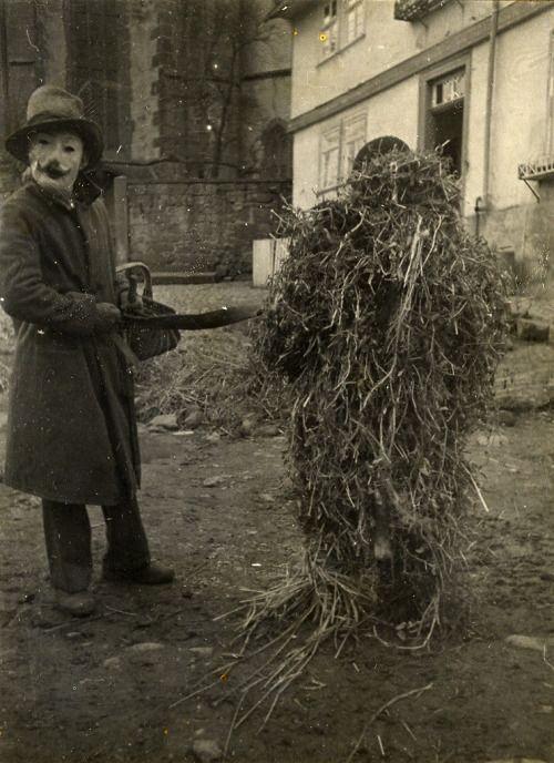 你们肯定都猜错了,其实这是德国乞丐过去的冬装......在严寒的冬季,他们只能把干草缠在身上当衣服,再绑几个铃铛,提醒大家,要饭的来了。也许是那时乞丐太多,居然形成了这种民族特产的服装,现在还可以在狂欢节中频频亮相。