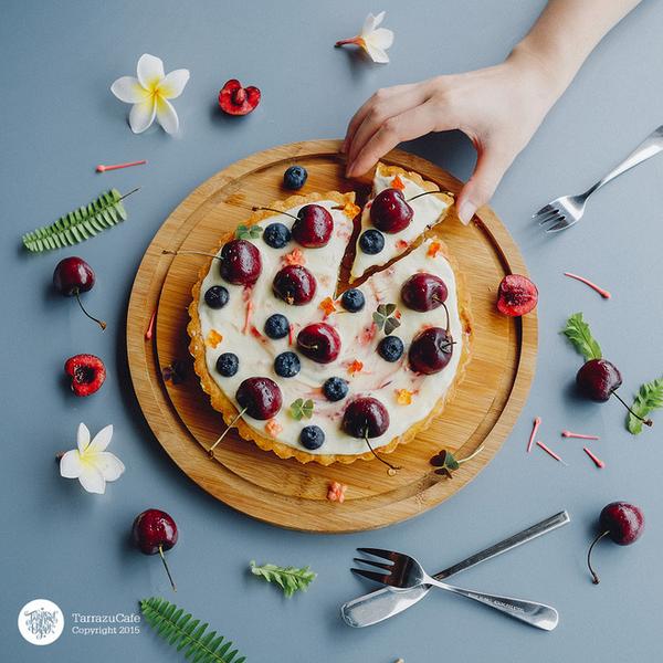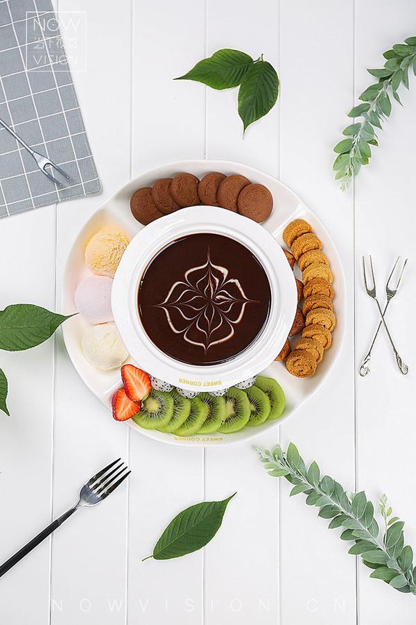 俯拍适用于大部分甜品,能够较完整得体现食物的外观。
