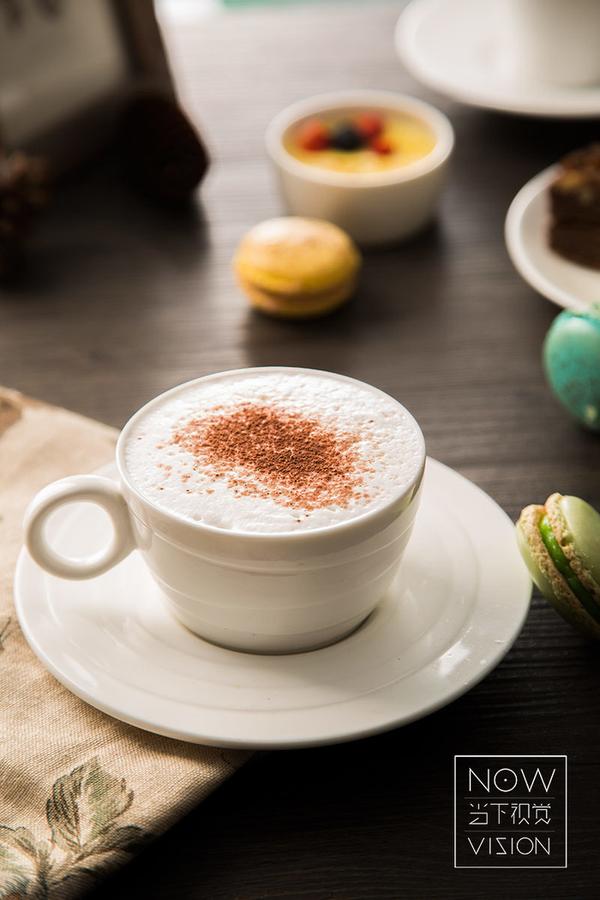 拍摄方法:站在餐桌前,观察甜品的视线,大致与餐桌的水平面呈45度角,找到一个甜品最好看的角度,这时候拿起相机,把镜头对焦在被拍摄的甜品上,拍出来照片就特别接近你的眼睛看到的场景了。