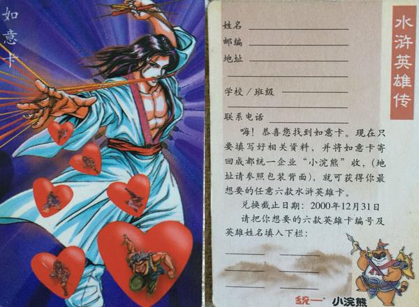 如意卡到手。我写下6位水浒好汉的姓名,填上我爸单位地址,寄出卡片。