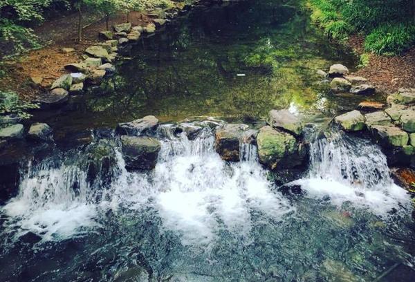 整个九溪长约5.5公里,沿着溪流是葱茏的树木和大片的茶园,清新的景致让人漫步其中,心情惬意;顺着沿溪的林荫路悠闲地走走,有种人在画中游的感觉,非常享受。尤其天气暖的时候,还会看见不少在溪边玩水的大人和小孩。