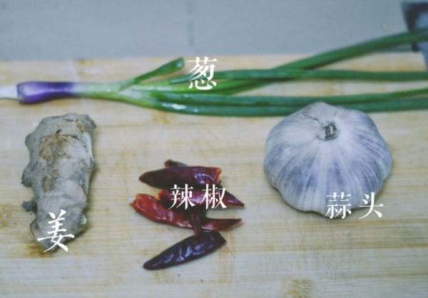 配料:姜,蒜头,辣椒干,葱,豆瓣酱,料酒,鸡精,油(因为我不喜欢花椒,所以就没下)https://pic1.zhimg.com/v2-01b218a88f0525c06e322330ed834a6c_b.png