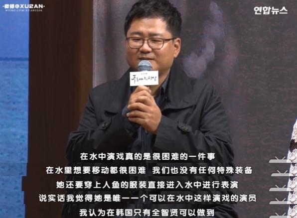 “我真的没有想到,一个像全智贤这样大牌而且还是刚生完小孩的演员,会这么敬业地泡在水里四五个小时。我回去还跟我老婆说,全智贤真的是一个努力的好演员。”