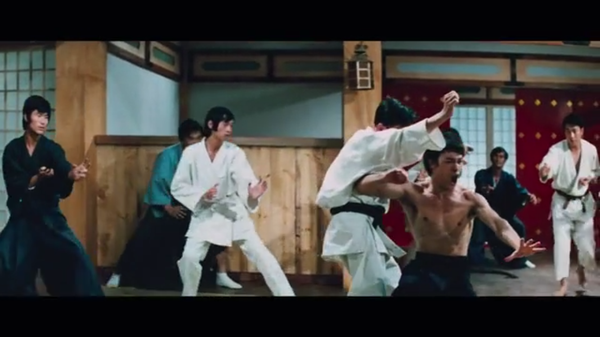 如李小龙的电影里面,李小龙打日本武士的时候,别人都在后面干比划。敌人排着队,而且是同一个方向,一路平推。