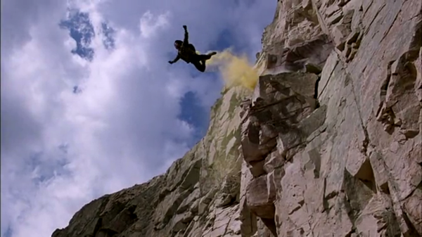 最后向山崖边滑,跳过去抓住半空中的飞机