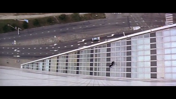 从几十层的鹿特丹大厦的斜坡玻璃上跑下去