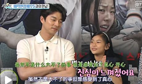 《釜山行》的小女孩秀安也说,孔刘爸爸超级贴心的,拍摄的时候会给她量身高。