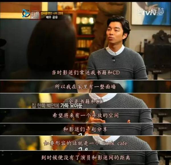 孔刘说,他的梦想就是以后不拍戏了,就开一个book cafe,把书都借给来喝咖啡的人看。