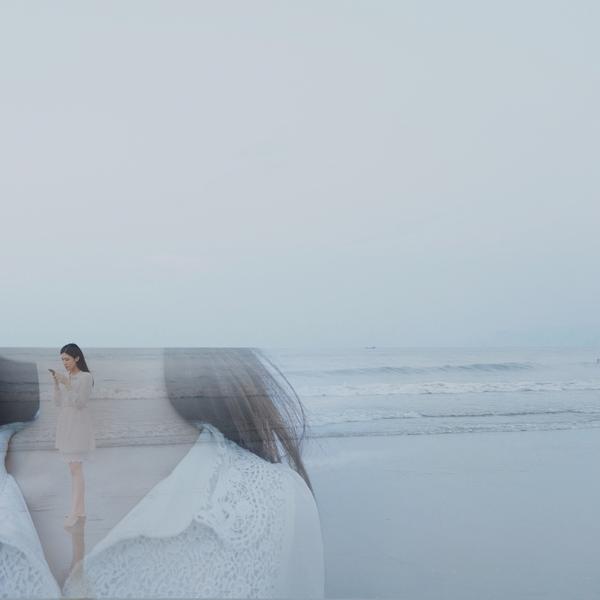 再来张锁骨,在海边架三脚架自拍真是太困难了。依旧手机控制微单。