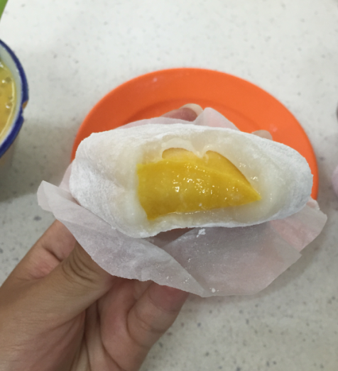 芒果糯米糍:几乎有一个iphone那么大的糯米糍,吃一口太幸福了。店里两个阿姨现场制作,手法娴熟,看起来就新鲜。大概有半个芒果肉包在里面,很甜很香。