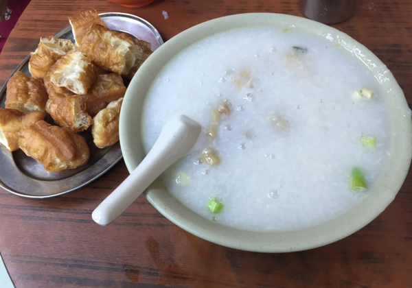 鸡杂粥:大概可以算是截至目前喝过最好味的粥。鸡杂处理的毫无腥味,和煮的绵软的粥融合在一起,每一口都是享受。早餐还搭配了一碟油条,泡在里面吃。味道没谁了。
