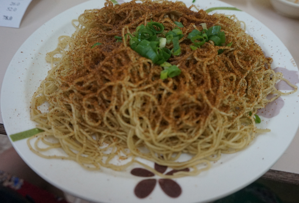 虾籽拌面:香港的面条大多是这种细细的面,碱味很浓。煮好的面捞出来在盘子里,撒上虾籽拌着吃。有些干,搭配了一小碗海鲜汤刚好调和。怎么说呢,好吃,但难以让人铭记。