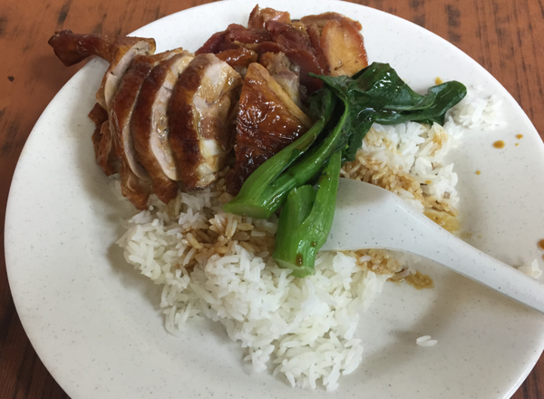 叉烧烧鹅饭:叉烧是香港的味道,好像不少人都会在早餐吃叉烧。店里满满的都是叉烧、烧鸭、烧鹅的香味。选了叉烧和烧鹅的双拼,烫了几个青菜和米饭搭配。米饭不知道是什么品种,韧劲十足,清香扑鼻,和叉烧的汤汁拌起来太好吃了,一想到再也吃不到这么好吃的米饭我都会觉得难过。墙上的招牌菜照片旁边给叉烧饭配的文案是:我想我再也不能清心寡欲的活着。